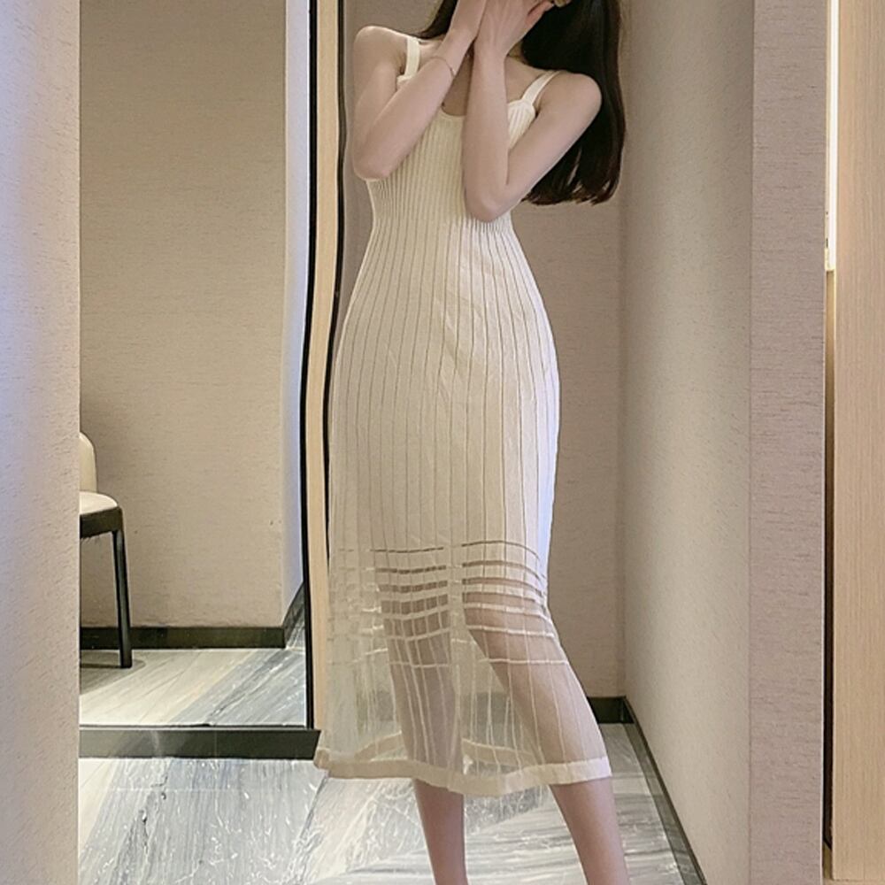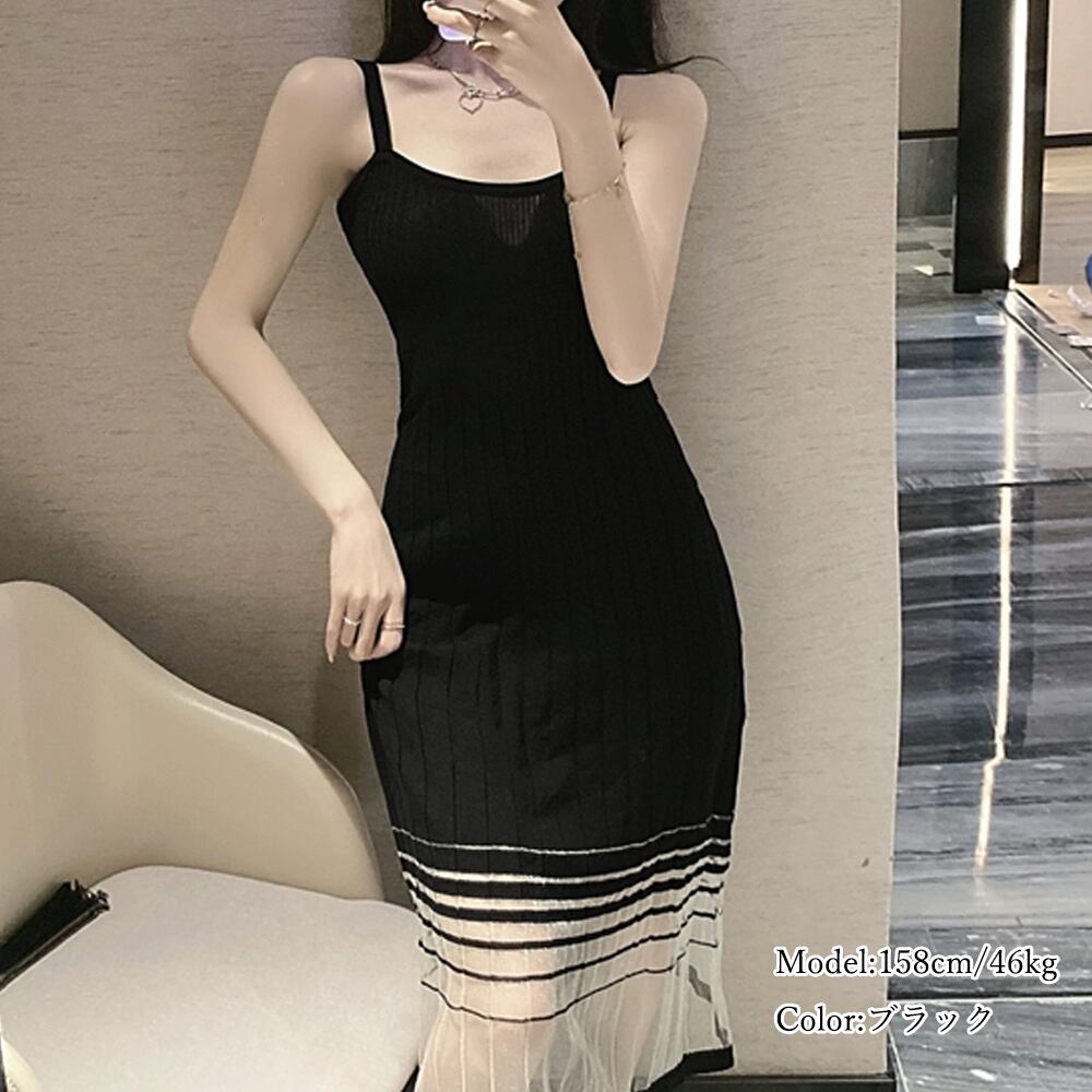 女性らしいシルエットにしてくれるシンプルなニットキャミソールワンピース♡