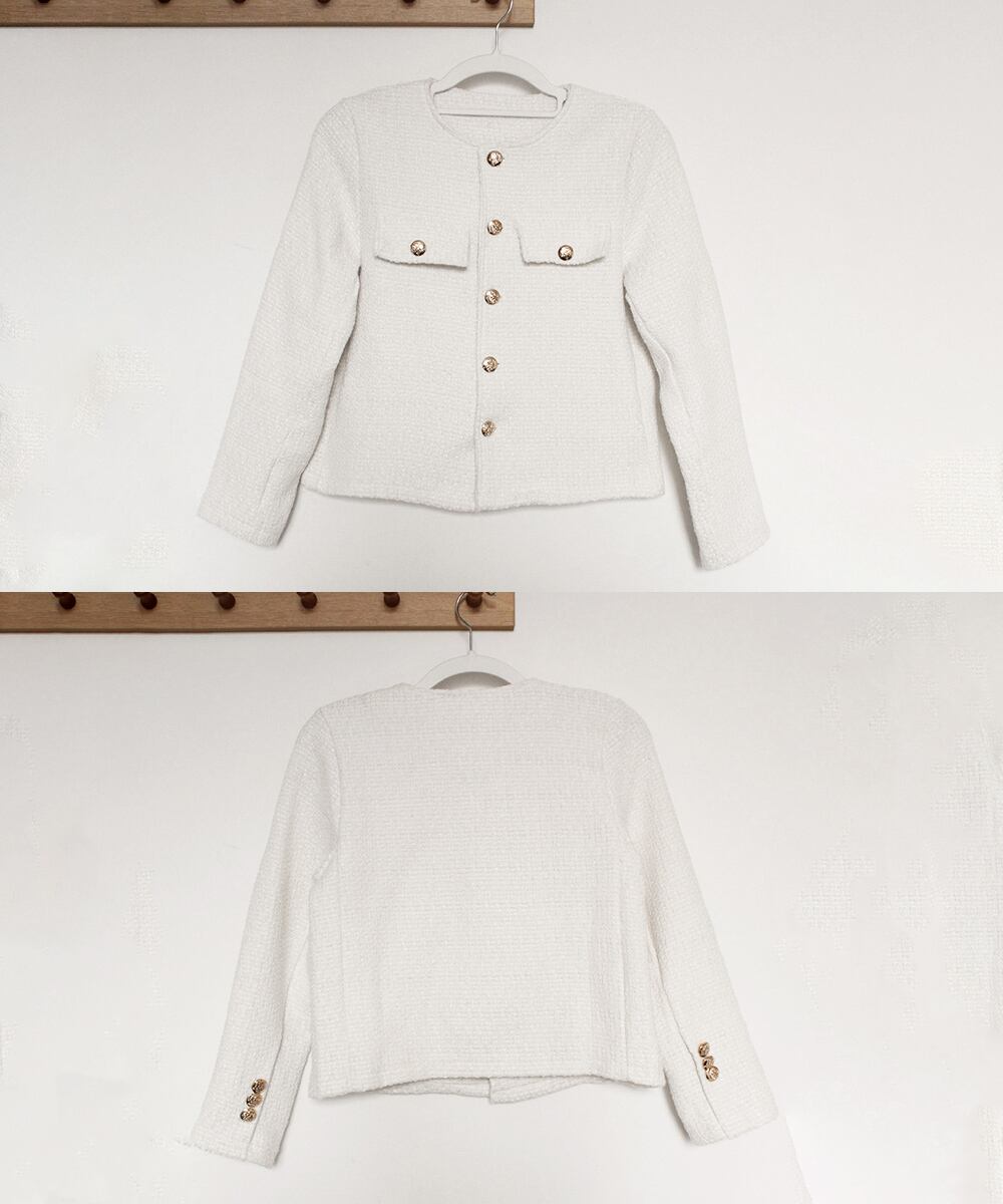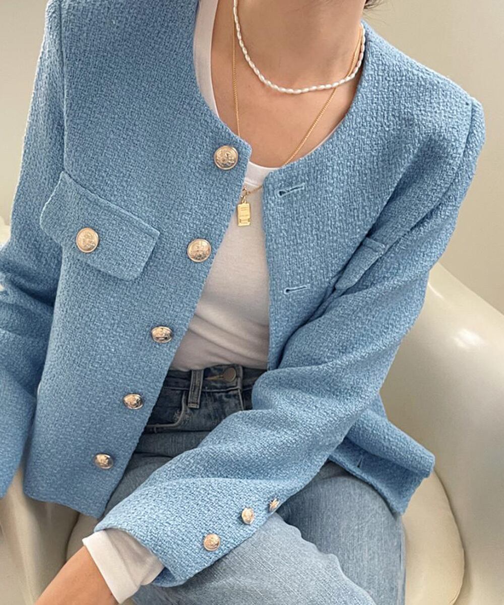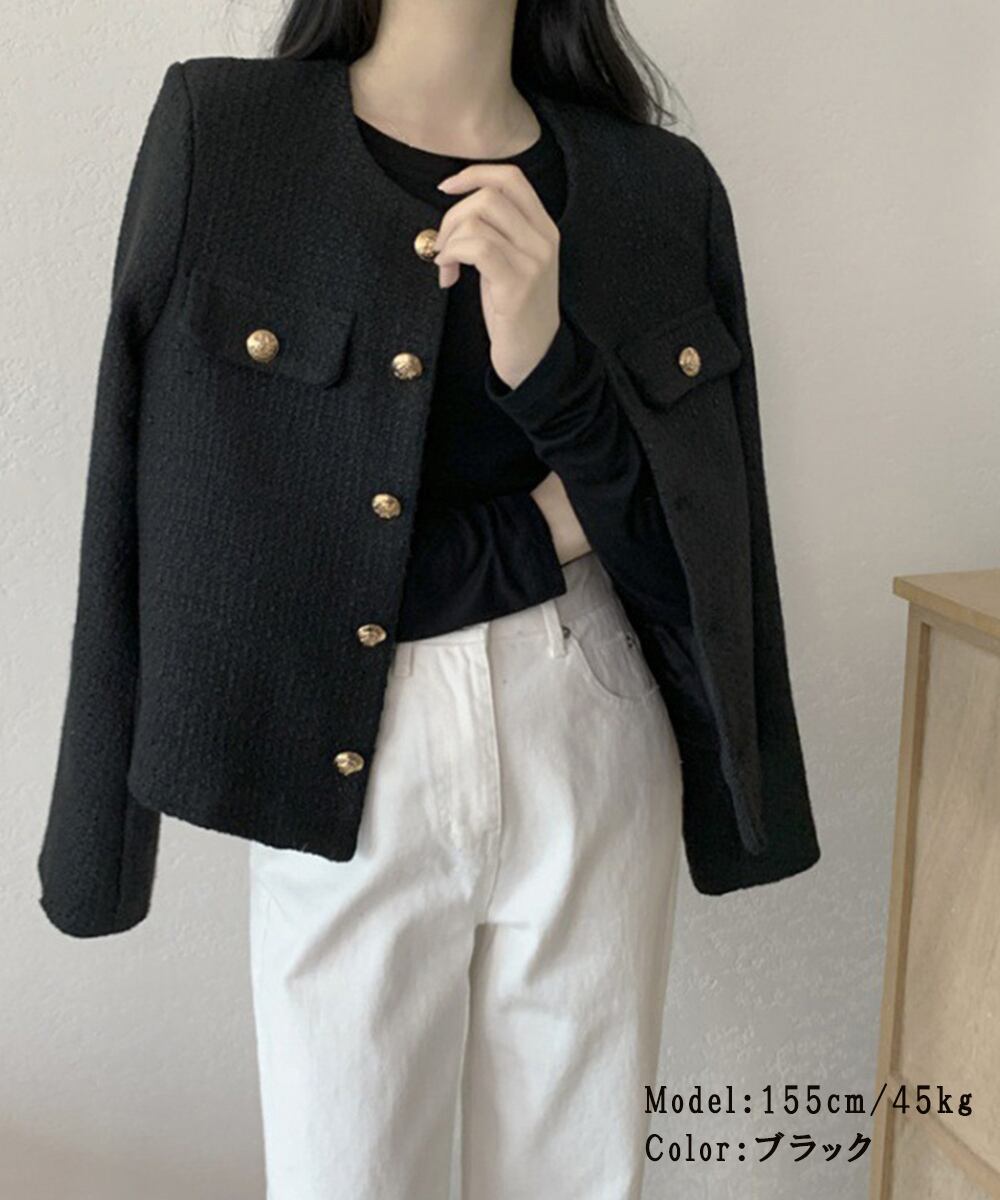 上品でスタイリッシュなツイード風ジャケット。多彩なデザインが特徴で、カジュアルからビジネスまで幅広く使えるアイテムです♡どんなコーディネートにも合わせやすいです。