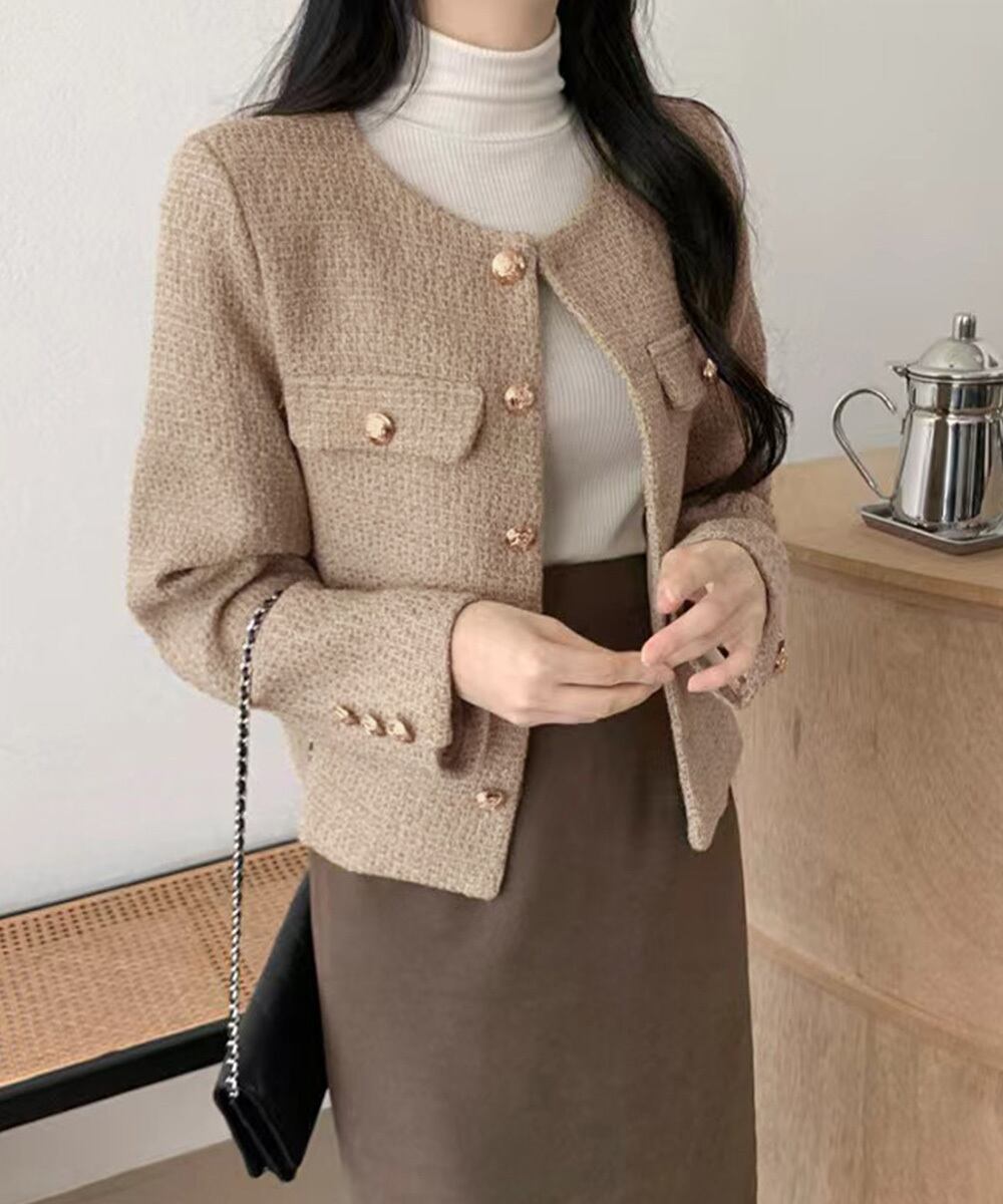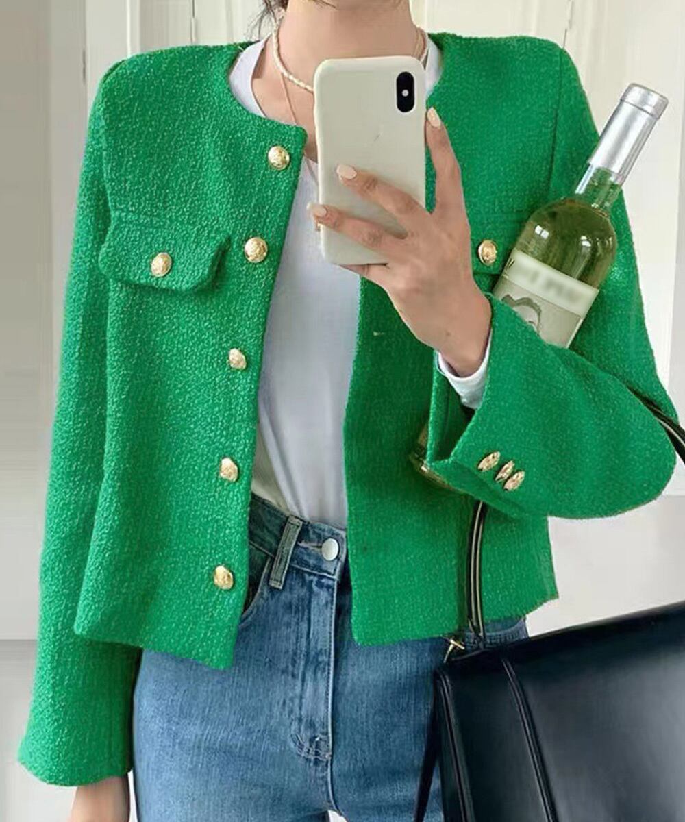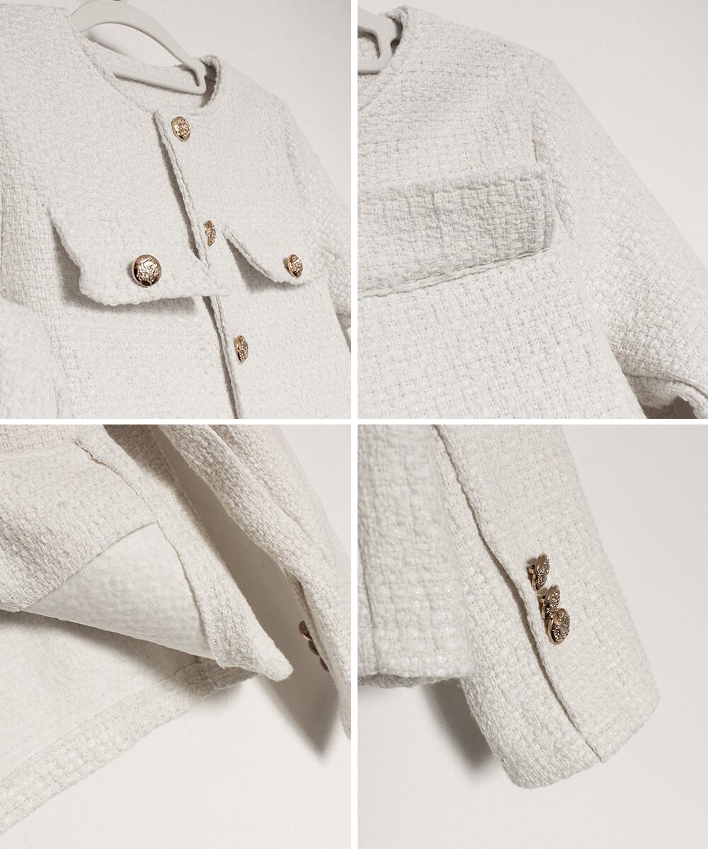 上品でスタイリッシュなツイード風ジャケット。多彩なデザインが特徴で、カジュアルからビジネスまで幅広く使えるアイテムです♡どんなコーディネートにも合わせやすいです。